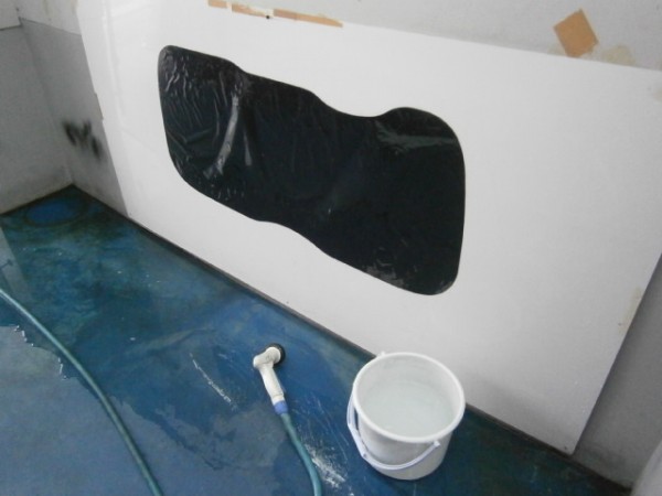 貼り込み終了、屋外で乾燥させます
