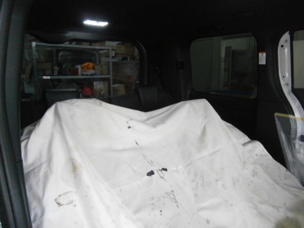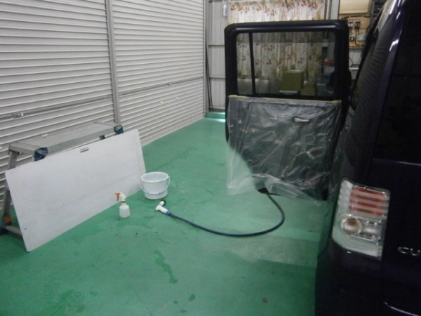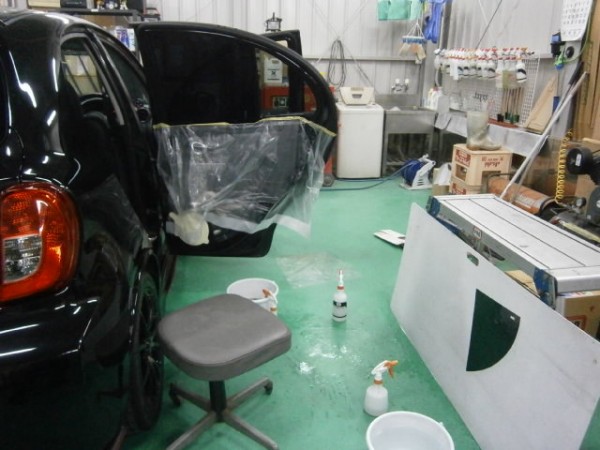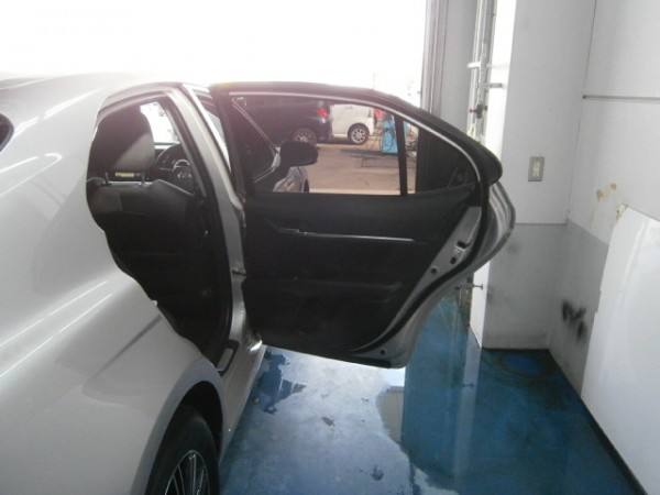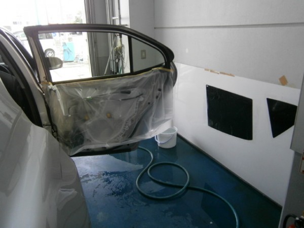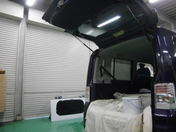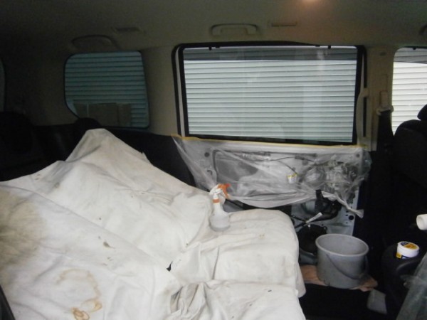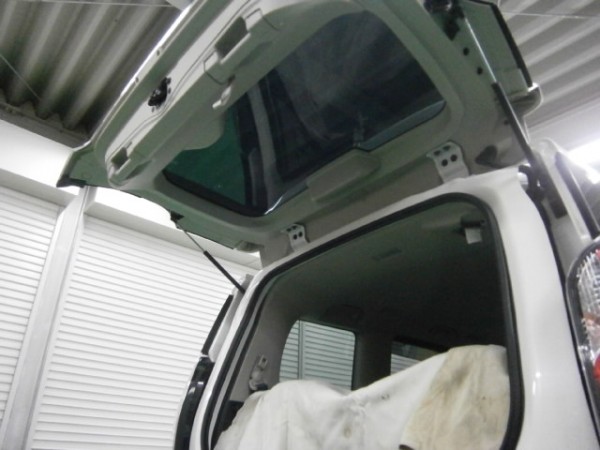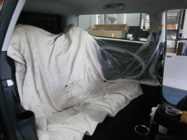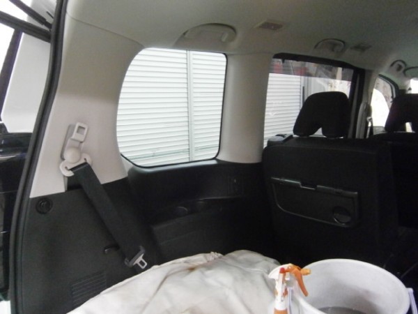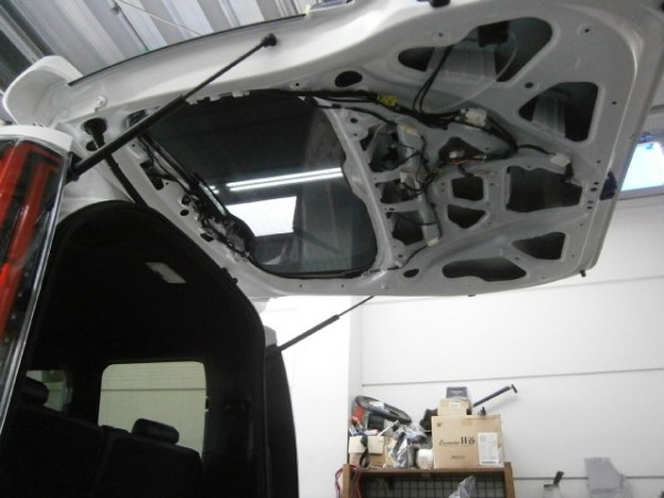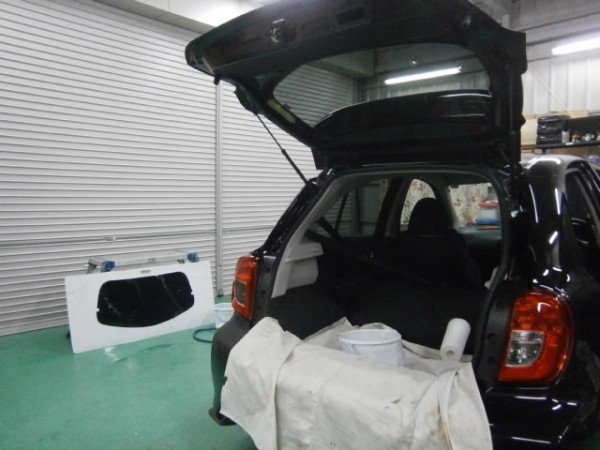 後部全面に貼る断熱スモークフィルムを貼る前の準備をします