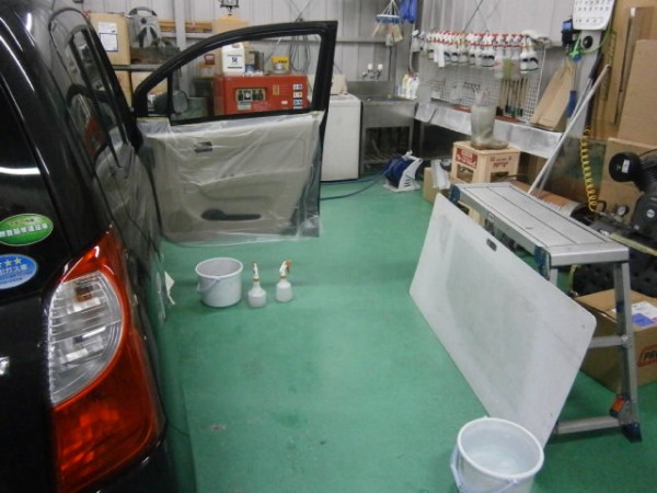 準備が出来たところでスライドドアからフィルムを貼ります