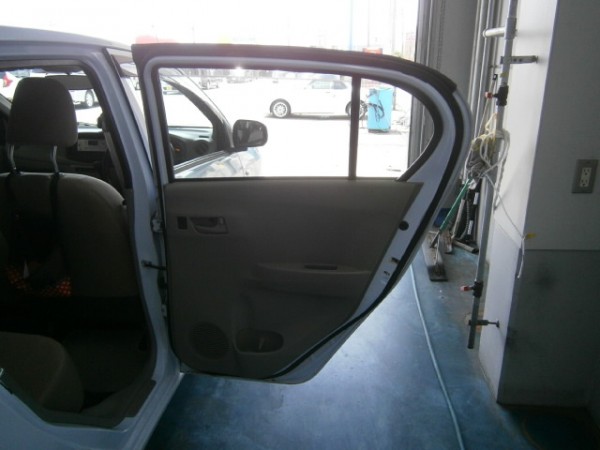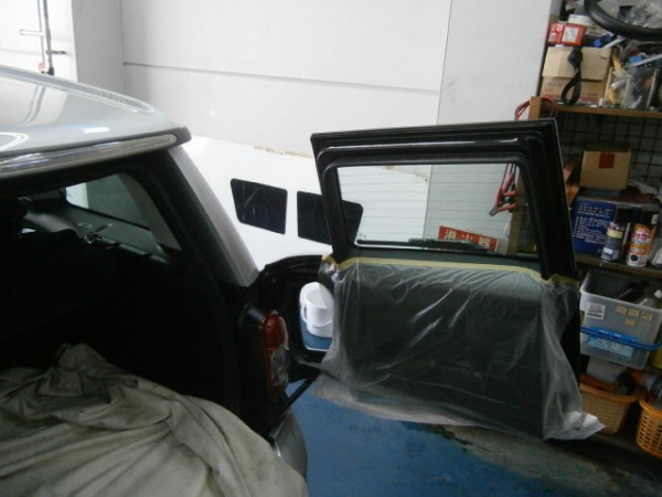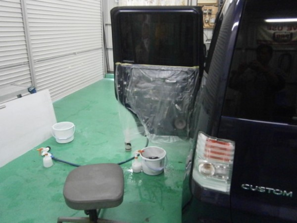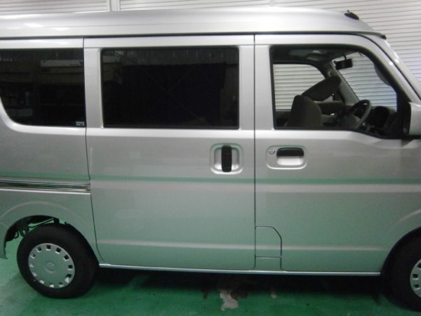 リアのスライドドアから貼っていきます