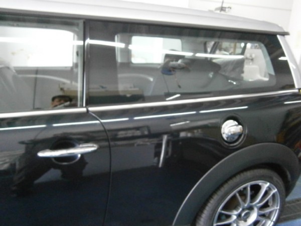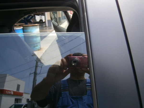 三角窓を付けてから サイドにフィルムを貼っていきます。