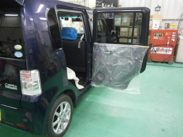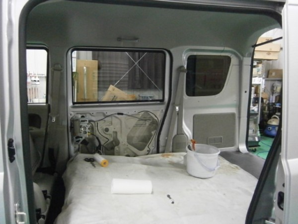 スライドドアの内張りも外して貼り込みますよ
