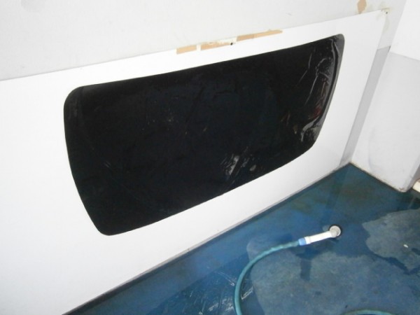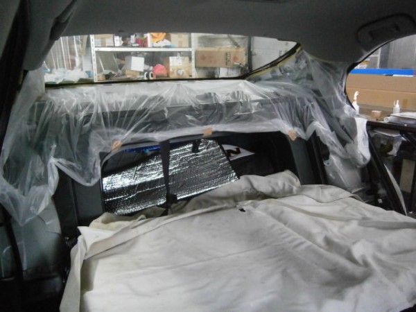 リア全面に断熱5%のプライバシー保護の為に真っ黒にします