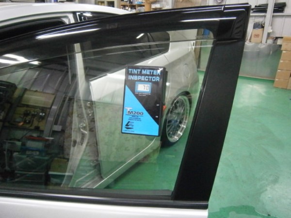 貼り込み終了から2時間乾燥させて測定、助手席は70%クリア