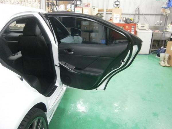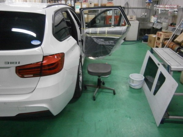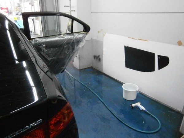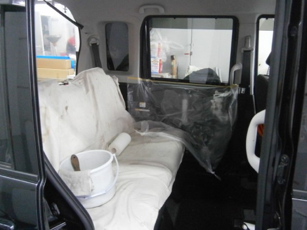 後部席全面に断熱スモークフィルムの16%のフィルムを貼ります