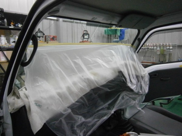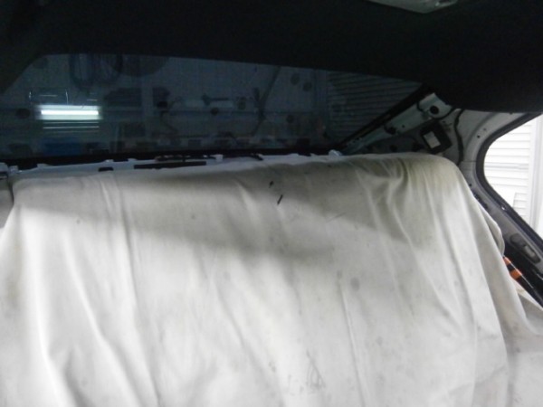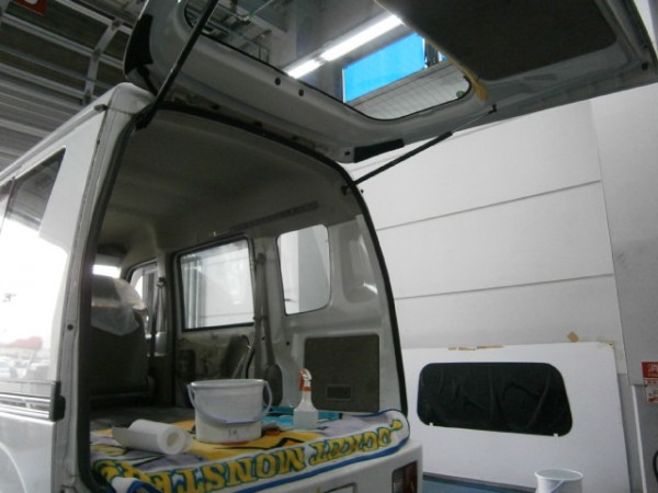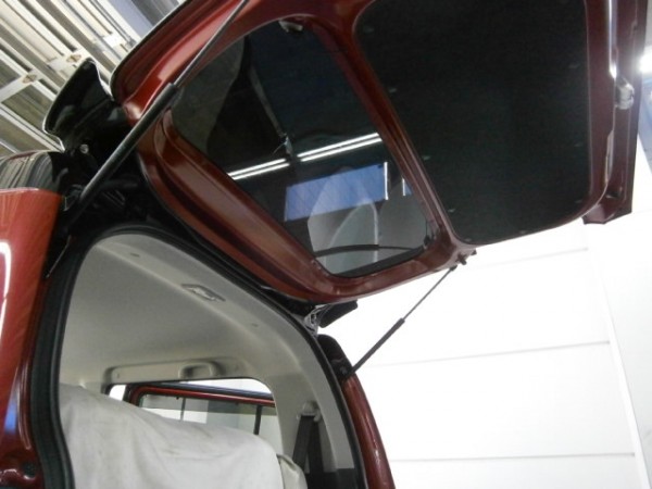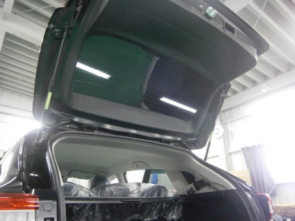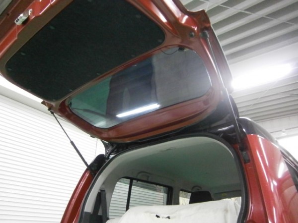 仕事道具が見えない様にしたい、とリア全面に断熱10%のフィルムを貼ります