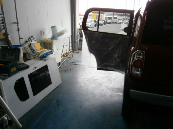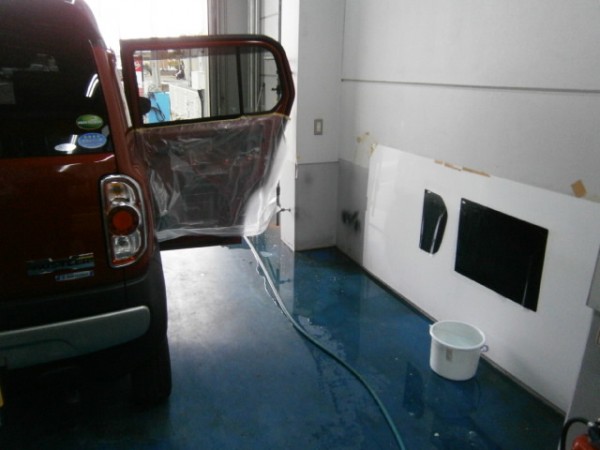 昨日、養生まで済ませていたワゴンRの続き作業です