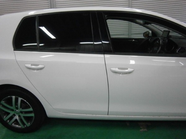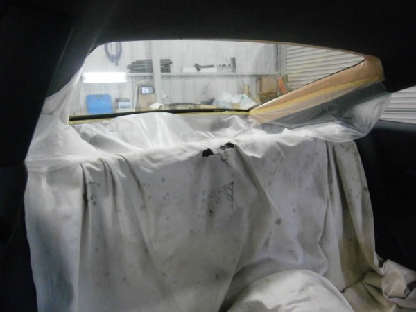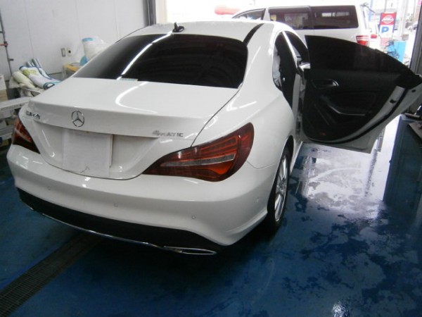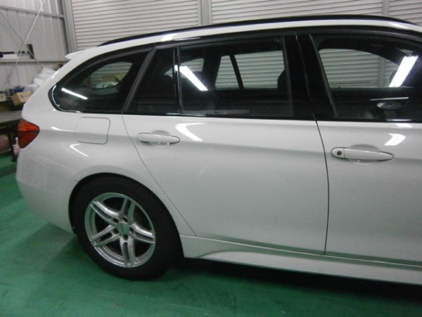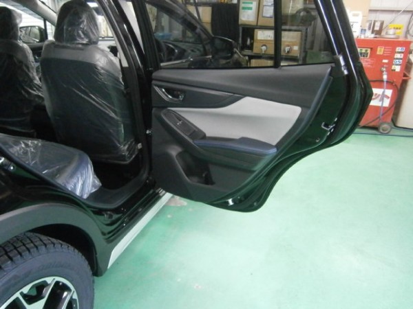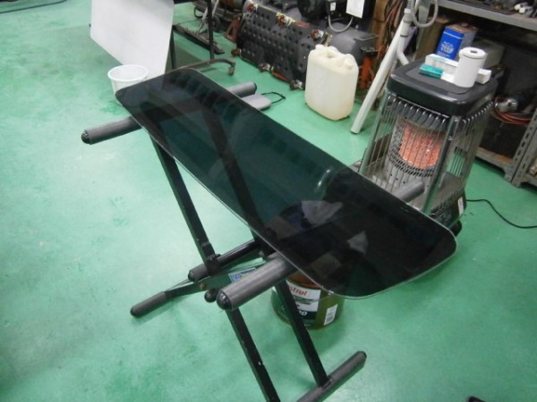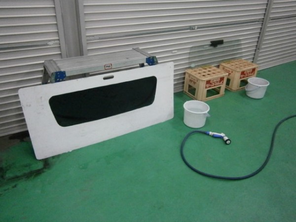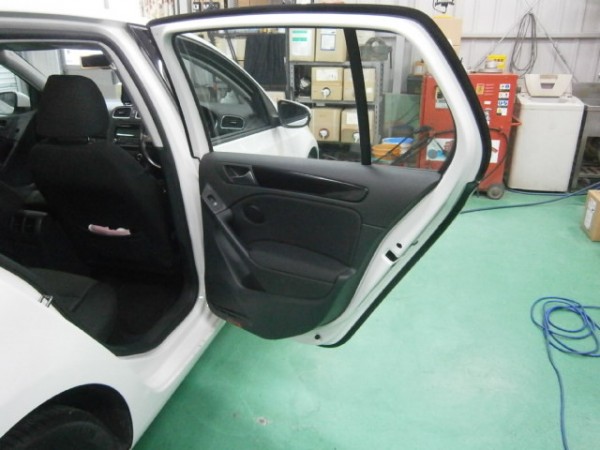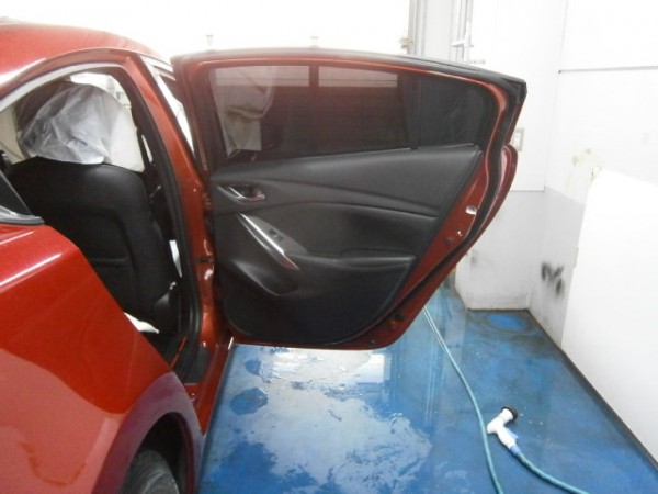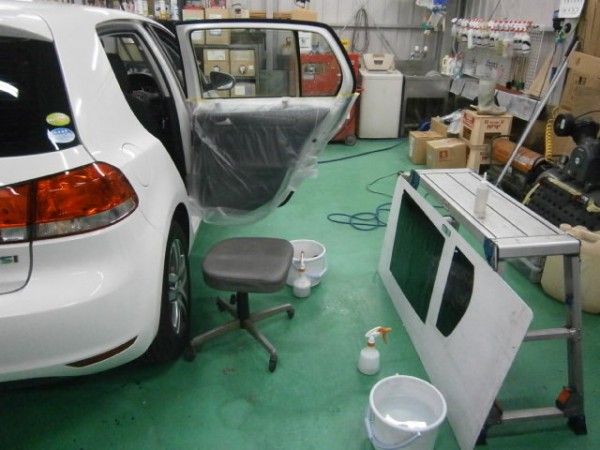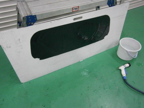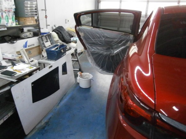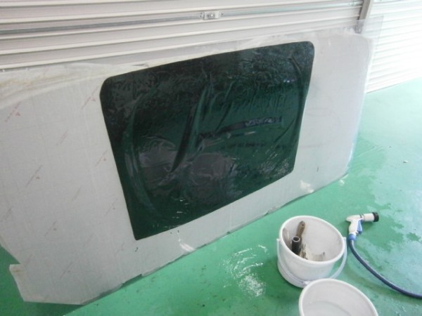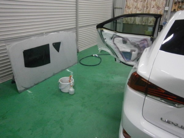 三角窓のゴム枠が硬く、ちょっと苦戦気味でしたが貼り込み終了