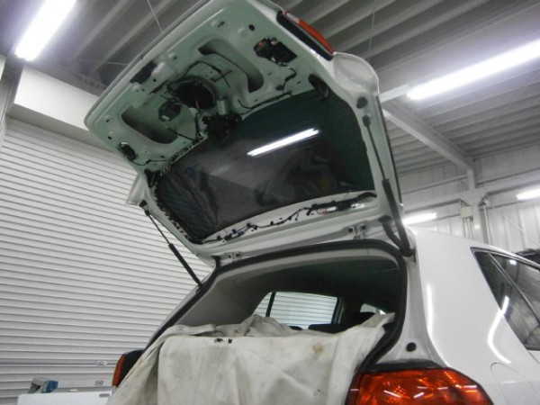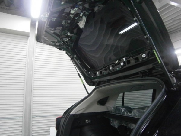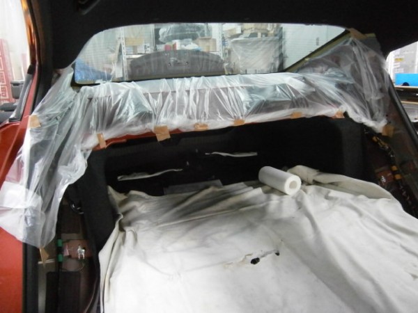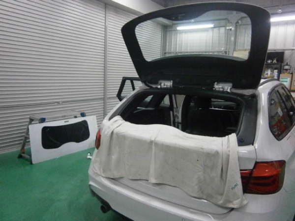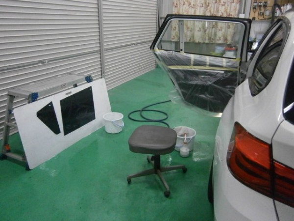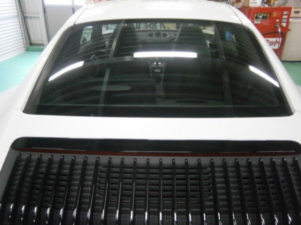 リア全面プライバシーガラスに断熱16%のフィルムを貼ります