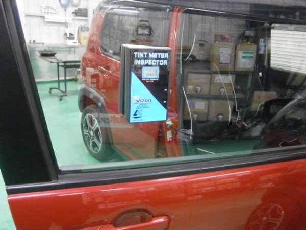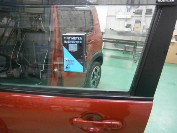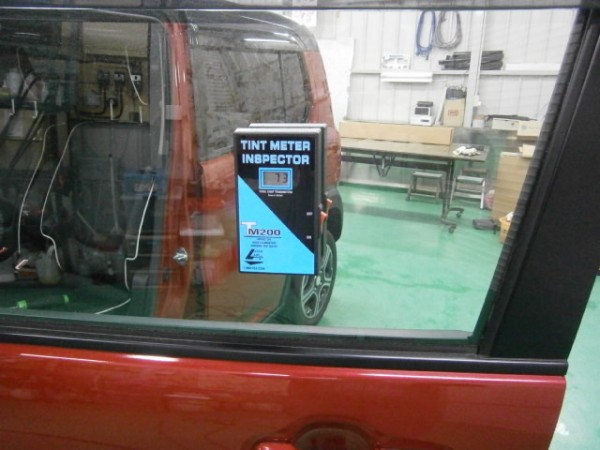 後部席全面のスモークフィルムが終わり透過率を計測します。