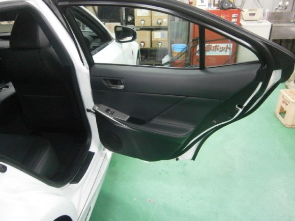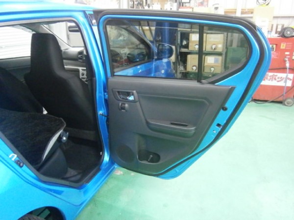 同じくサンシールドのダークスモーク、ドアサイドの透明断熱を貼り、リアのゴム枠窓も5%の濃い目フィルムを貼ります